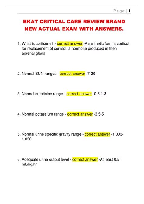 Reading Pdf Critical Care Bkat Answers Free Download PDF
